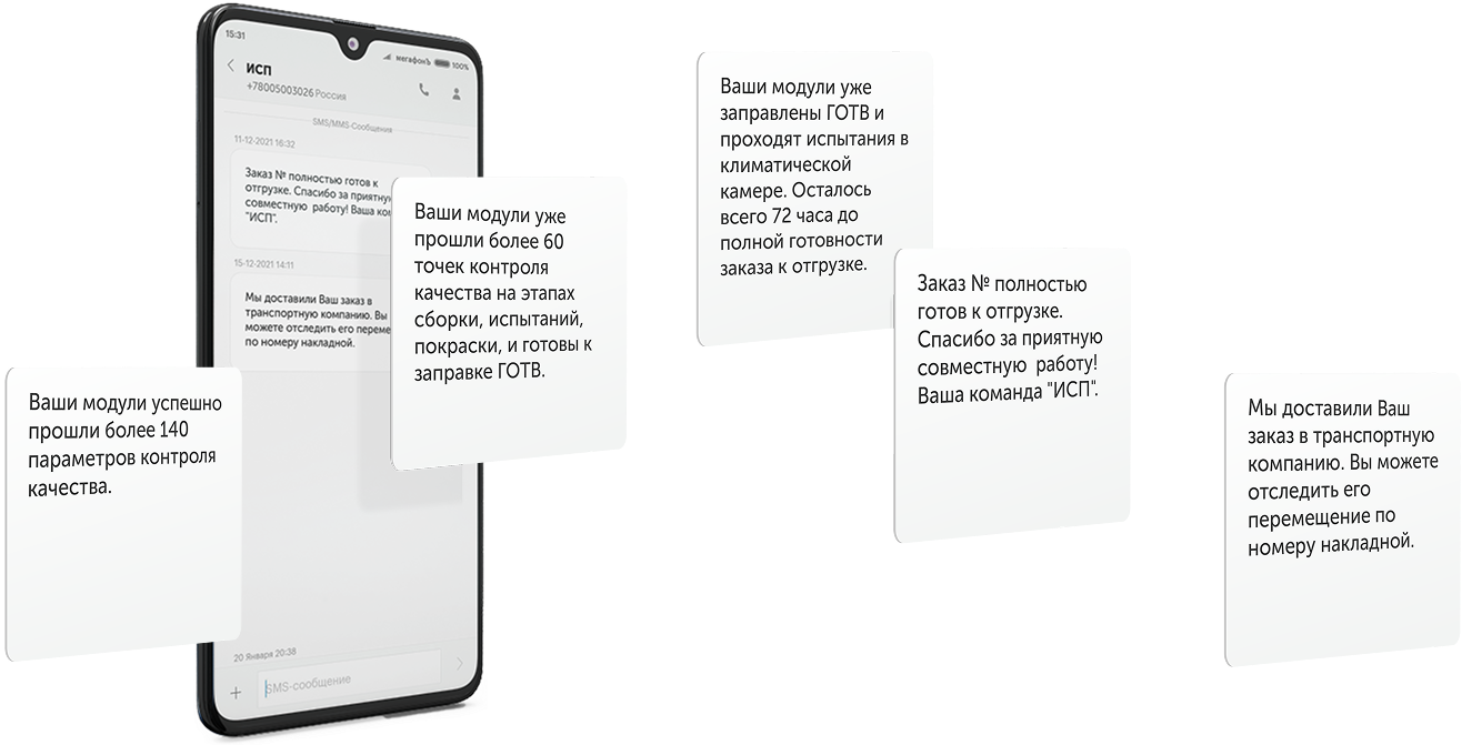 На всех этапах производства и доставки вы будете получать уведомления по почте или СМС